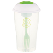 Fabricada en Plástico translúcido con tapa blanca y con bote para aderezo y tenedor en color Verde, Blanco o en Azul. Todo FDA aprobado.