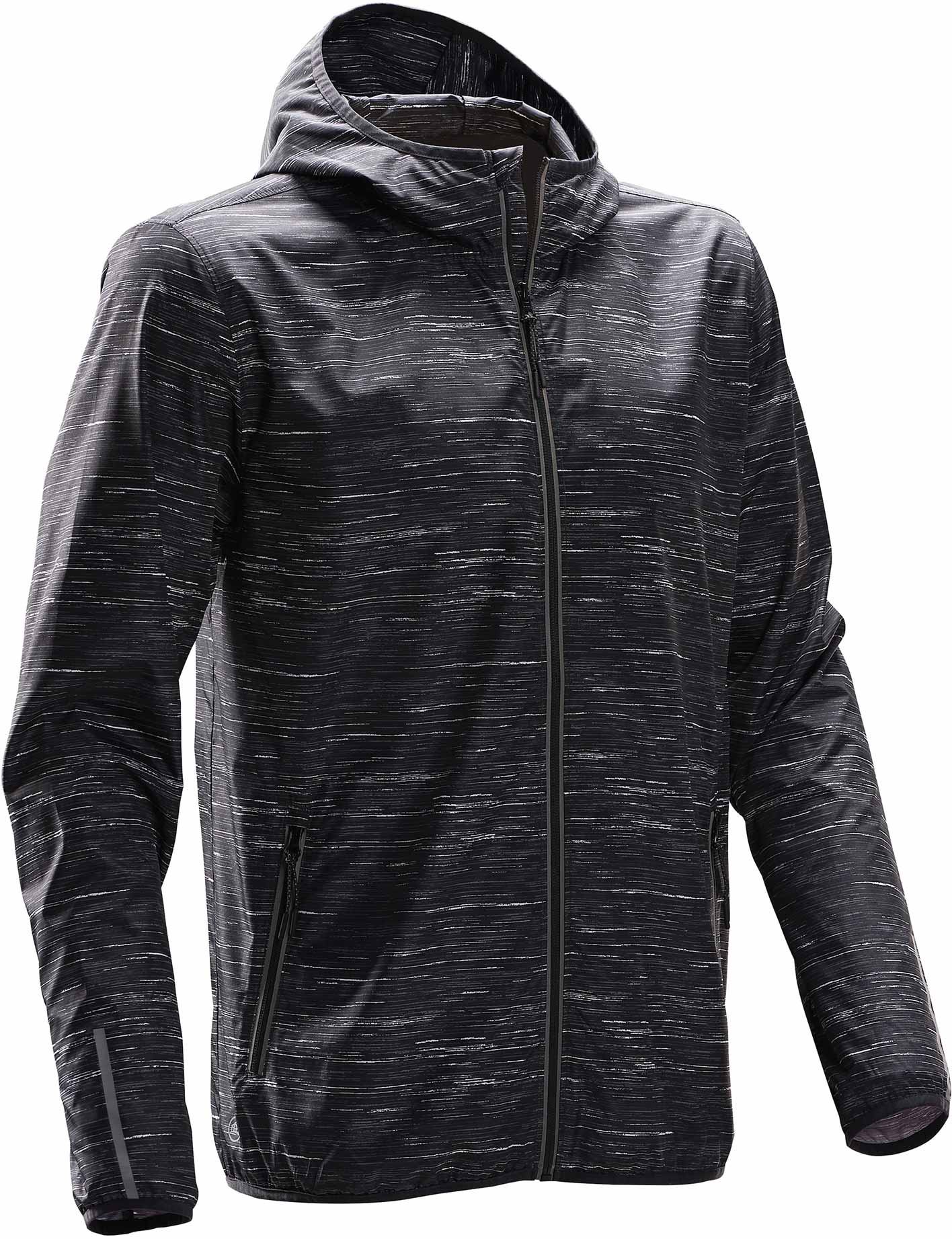 Chamarra impermeable fabricada en 100% Polyester Pongee de 2.30 oz., en color Carbon Mix.