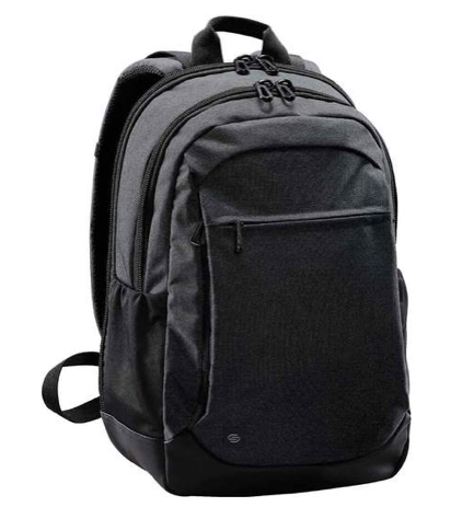 Back pack ejecutiva fabricada en 100% Polyester 600D y 100% Polyester con recubrimiento de PVC en color Negro o Carbón.