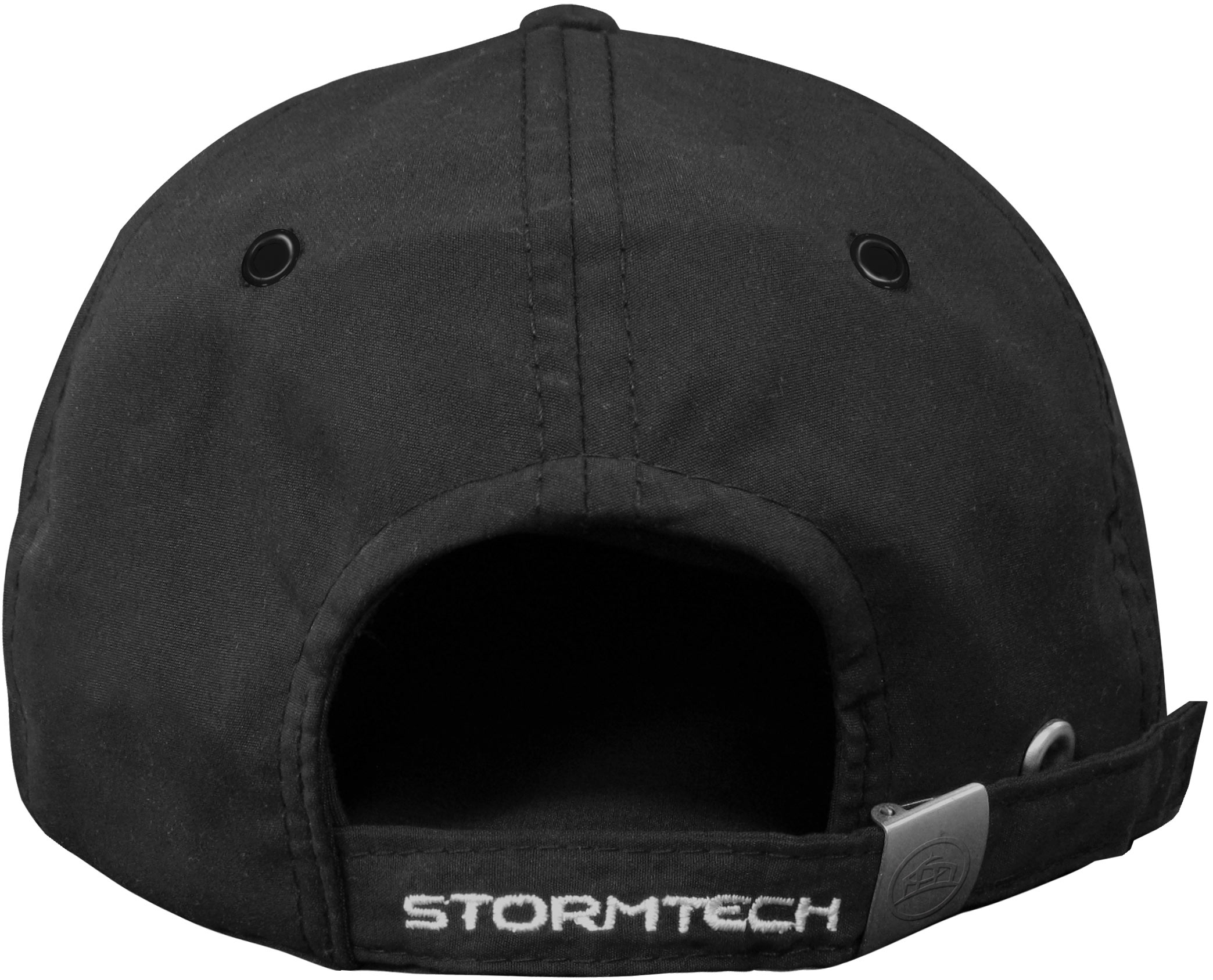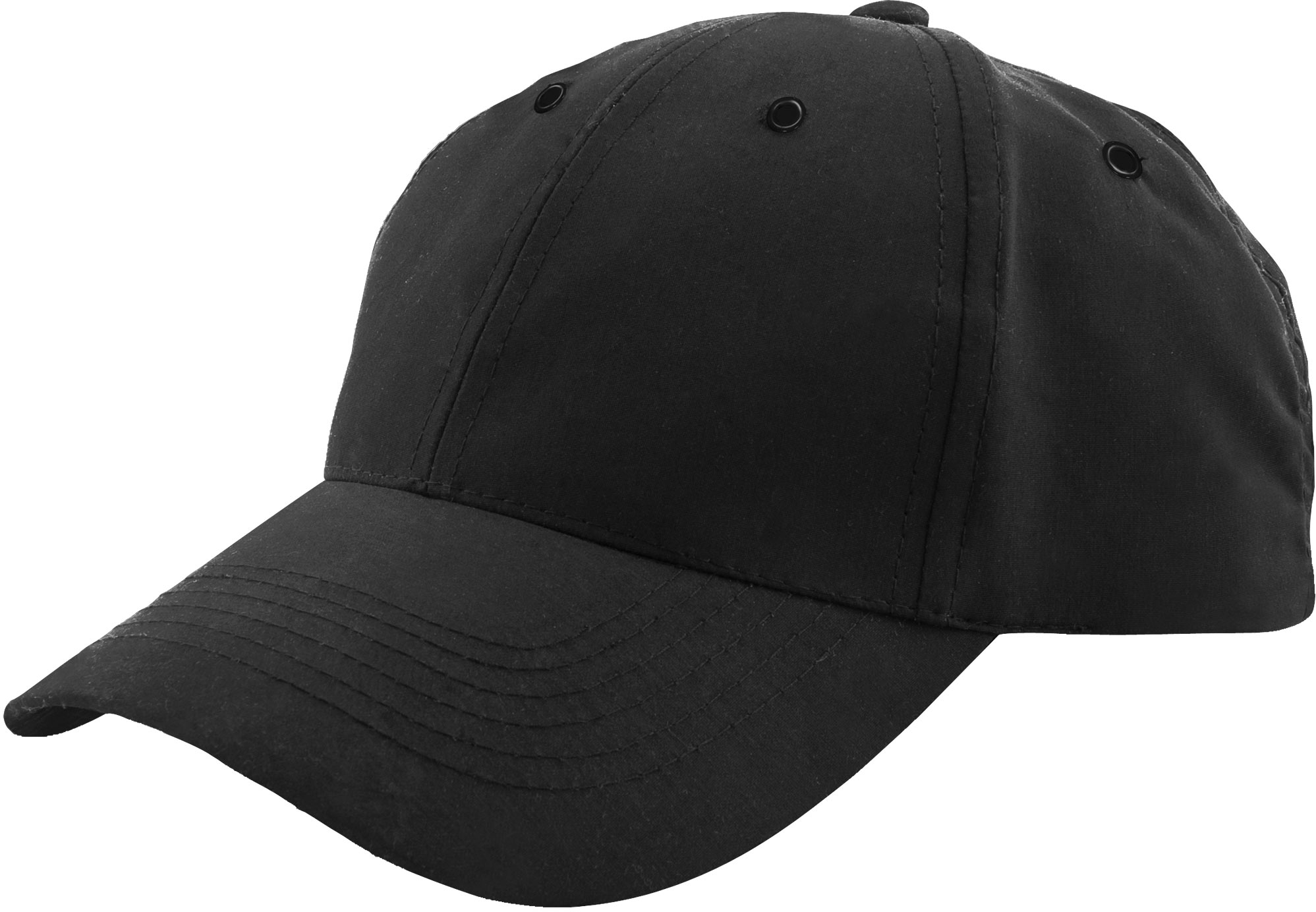Gorra tipo Baseball fabricada en 100% Polyester Microfibra, en color Negro, con herrajes metálicos en color contrastante.