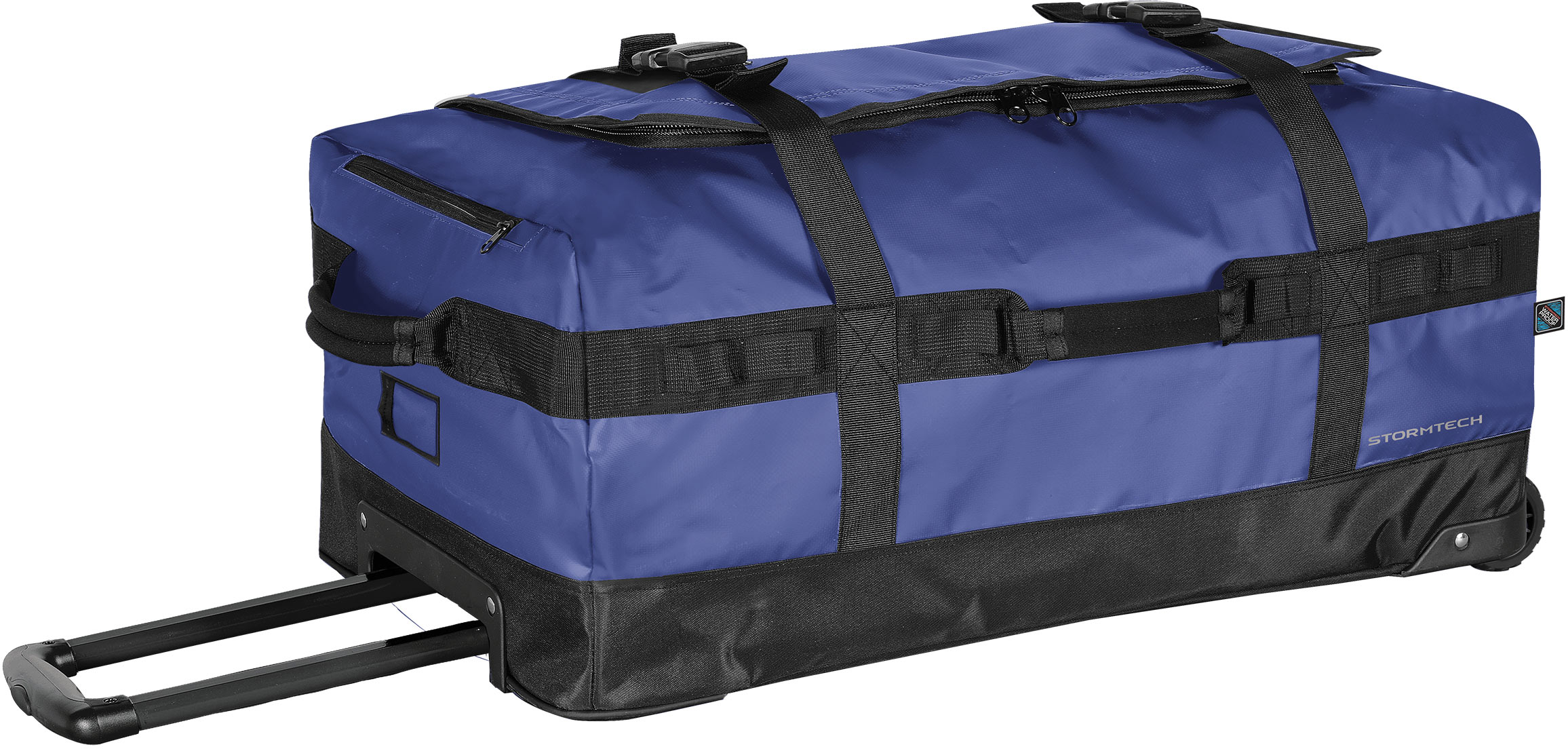 Con amplio compartimiento principal con cierre superior en forma de “U”, con bolsa interna de malla con cierre y con gancho porta llaves, porta ID, dos asas cabezales, dos asas laterales, correas de nylon ajustables, asa telescópica metálica y plantitas de nylon reforzadas.