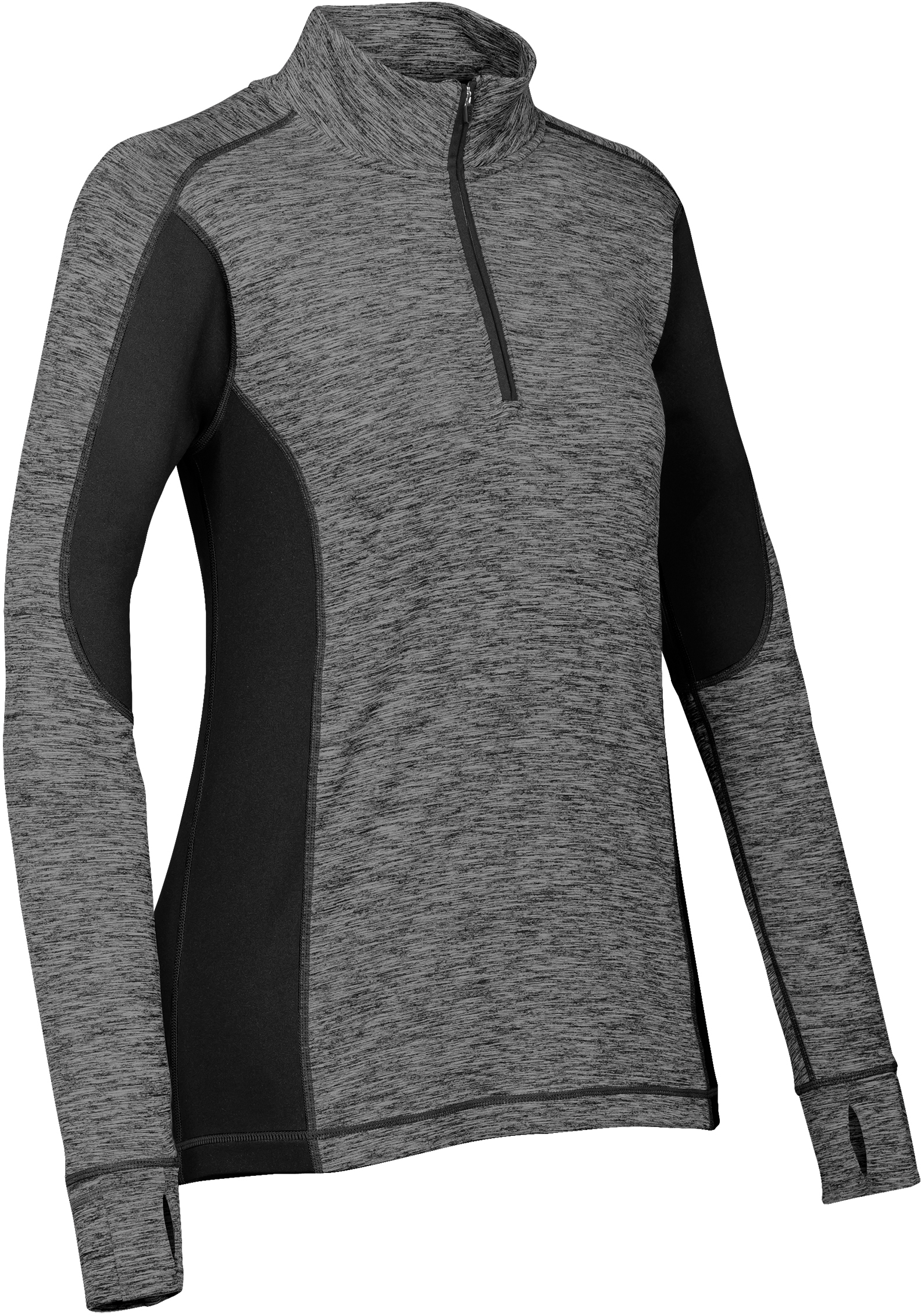 Sudadera fabricada en 91% Polyester 9% Spandex de 6.64 oz., en color Gris jaspe con detalles en color Negro.